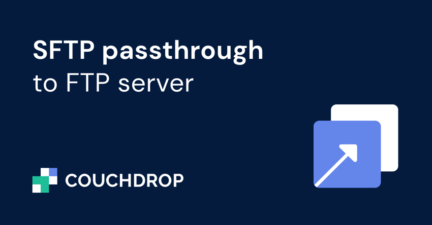 Couchdrop is a simple way to bridge FTP and SFTP connections. A fully-managed SFTP server is generated automatically at signup with no configuration or maintenance required. You can use this server as an endpoint immediately, and use this guide to connect FTP servers to your Couchdrop SFTP server in minutes.